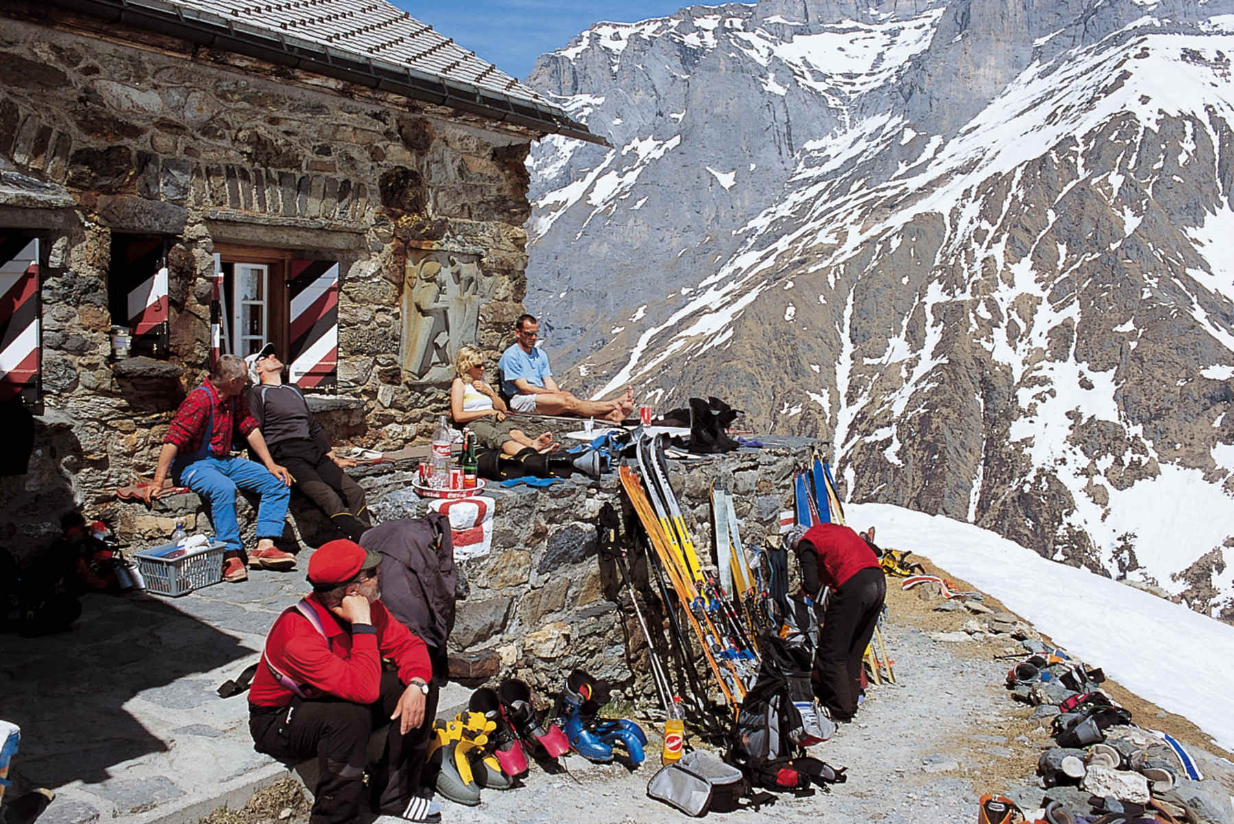 Kräfte tanken beim Sonnenbad vor der Fridolinshütte. Foto: Rother Bergverlag, Stefan Herbke