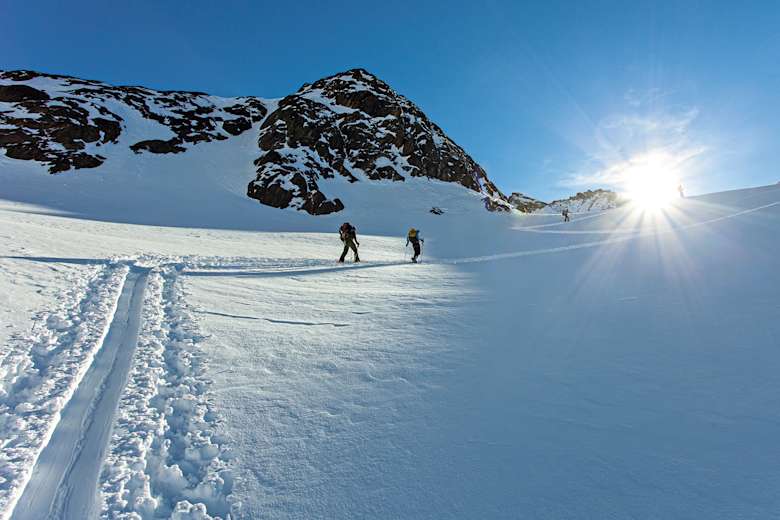 Beliebte Skitour, fast immer Spuren vorhanden; bei fehlenden Spuren erhebliche alpine Erfahrung erforderlich.
