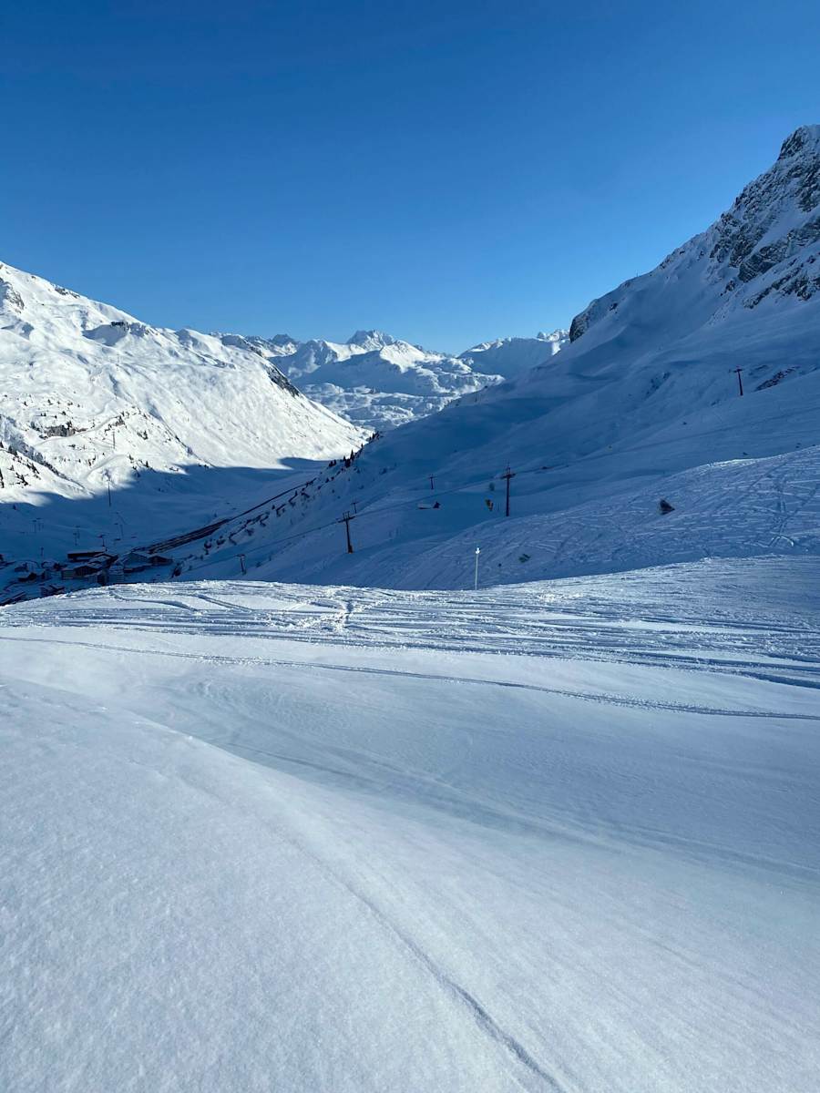 In Zürs hat man die Wahl: Entweder man steigt mit den Skiern am Rand der Skipiste zum Madloch auf oder man nimmt die Seekopfbahn. Vom Madloch folgt man der beschilderten Skiroute Madloch-Lech hinunter nach Lech.