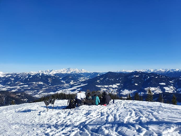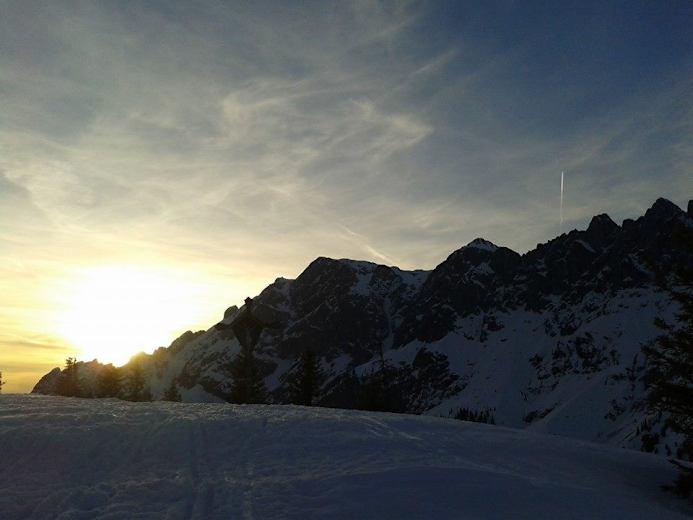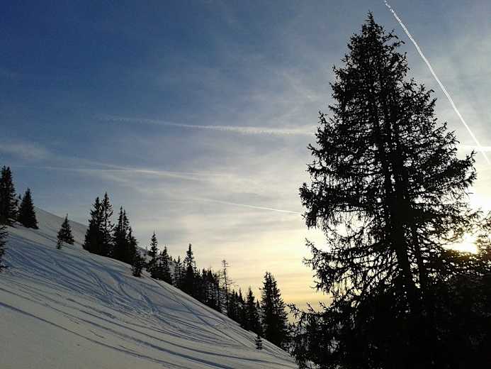 Wunderschöne Dämmerungspistenskitour im Skigebiet Hochkönig – vom Roßwieslift in Mühlbach geht es zum Hochkeilgipfel. Wer früh genug dran ist, genießt vom Roßwies einen traumhaften Sonnenuntergang.