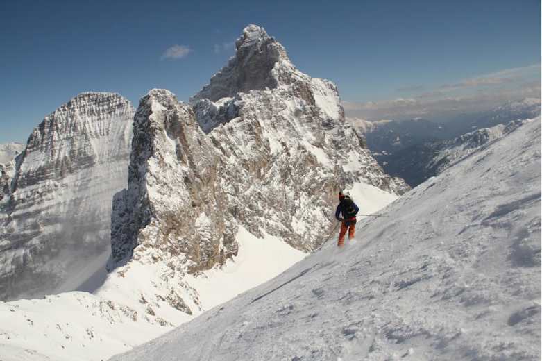 In der Abfahrt mit Blick zurück Foto: Holger Margreiter, gipfelträume.at