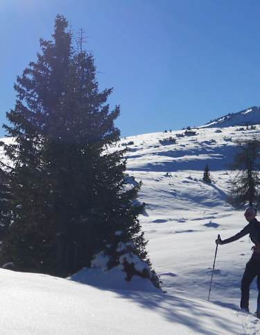 Ab hier weiter entlang der ausgeschilderten Strecke bis man auf Höhe 1.880 m wieder auf die Skipiste 7 kommt. Ab hier immer am rechten Pistenrand der Beschilderung folgend bis zum Gratrücken auf 2.300 m. Nach einer kurzen Pistenquerung gelangt man direkt auf den aussichtsreichen Gratrücken und erreicht in ca. 20 Minuten das Ziel.