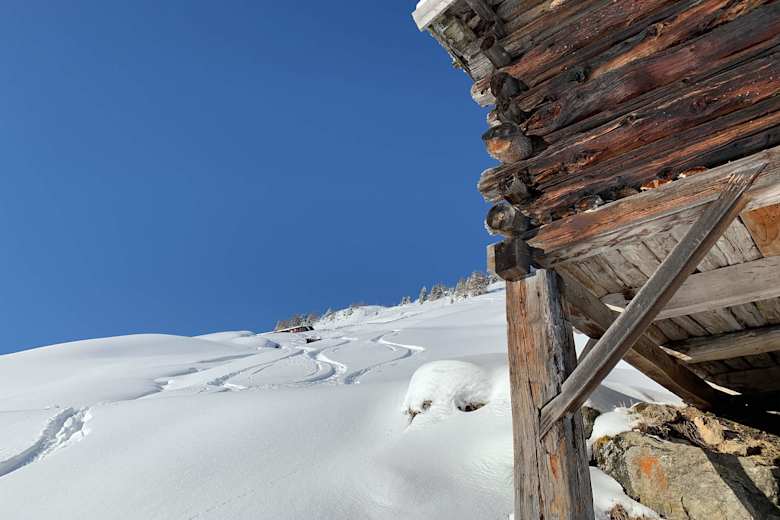 An einem schönen Tag sollte man keinesfalls die Sonnencreme vergessen und sich Zeit nehmen, um auf der Alm zu verweilen und den Ausblick zu genießen. Die Alm kann auch über die verschneite Forststraße erreicht werden, was für weniger geübte Skifahrer:innen bei der Abfahrt eine hilfreiche Option ergibt.