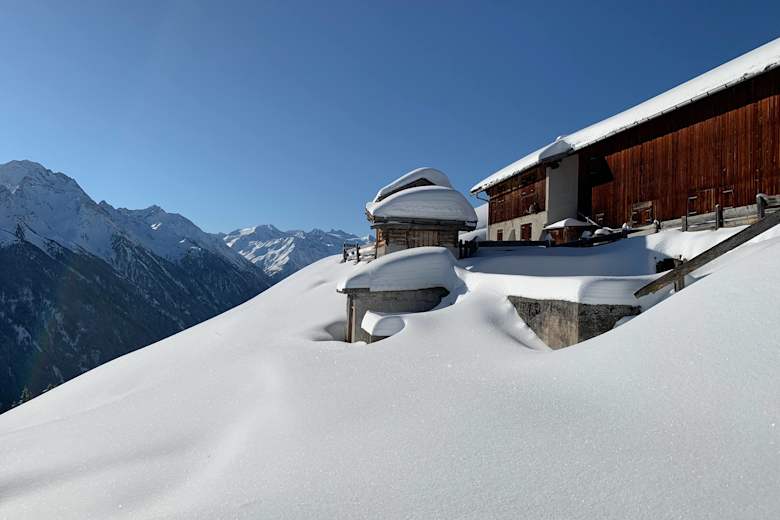 Idyllisch, tief verschneit und sehr sonnig: die Kaserstattalm Foto: stubaierbergfuehrer.at Bildergalerie (4)