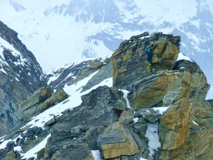 Wer gerne auf Graten herumkraxelt und auf wenig begangenen Routen unterwegs ist kommt hier am Piz Fora (3.362 m) in der Berminagruppe in der Schweiz auf seine Kosten. Nach einem etwas langgezogen Start öffnet sich der Blick in ein unberührtes Tal, danach folgt genussvolle Kletterei in tollem Fels und eine Abfahrt mit viel Gestaltungsfreiheit.