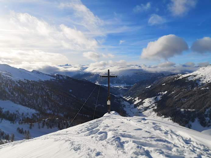 Die Skitour auf den 2.151 m hohen Rauhen Kopf im Schmirntal – oder genauer gesagt im Bergsteigerdorf St. Jodok, Sdhmirn- und Valsertal, ist eine relativ leichte Tour, die durch eine Waldschneise und später durch lichte Lärchenwälder auf den Gipfel mit schöner Aussicht führt. Ausgangspunkt ist die Brücke zur Holzebensiedlung in Schmirn.