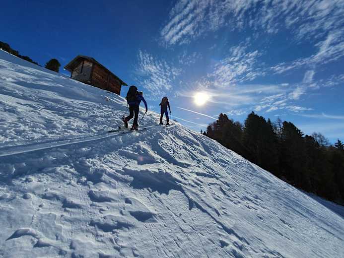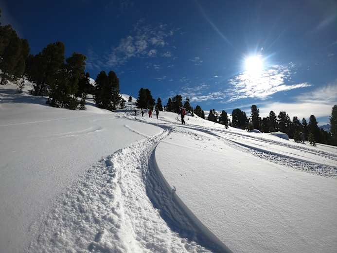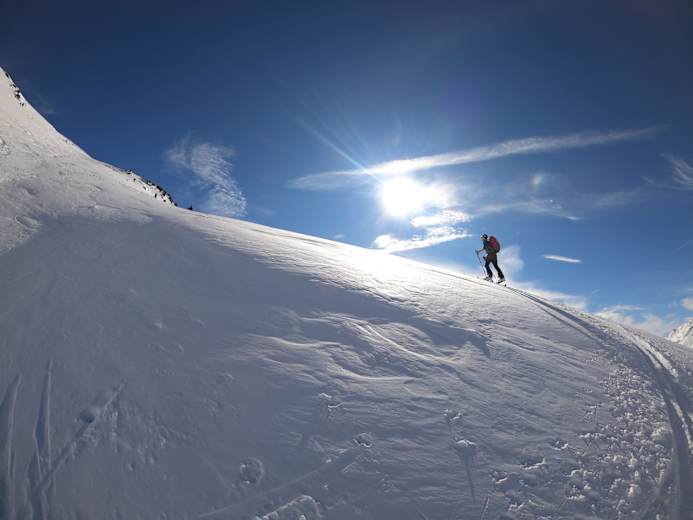 Die Abfahrt erfolgt entlang der Aufstiegsspur.