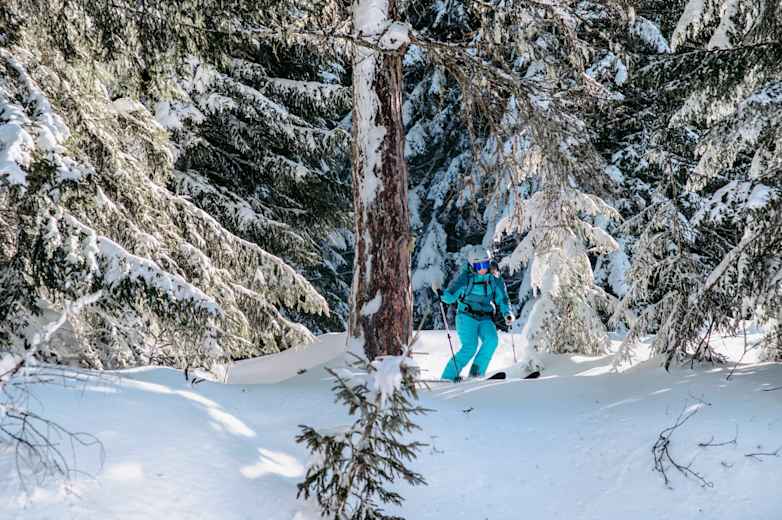 Über die perfekt präparierten Pisten geht es im Anschluss wieder hinunter ins Tal.