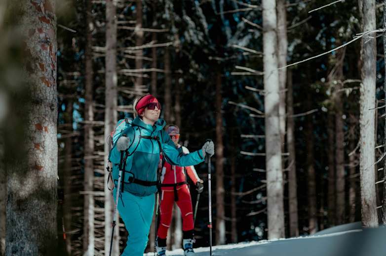 Leichte Einsteiger-Skitour über die Forststraße zur Schwaigalm bei Filzmoos im Salzburger Land. Ausgangspunkt für die Tour ist Parkplatz Vierthal Mühle in Neuberg.