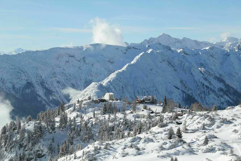 Nach der Tour kann man gemütlich in der Erfurter Hütte bei der Bergstation der Rofan Seilbahn einkehren, ehe man über die Pisten talwärts fährt.
