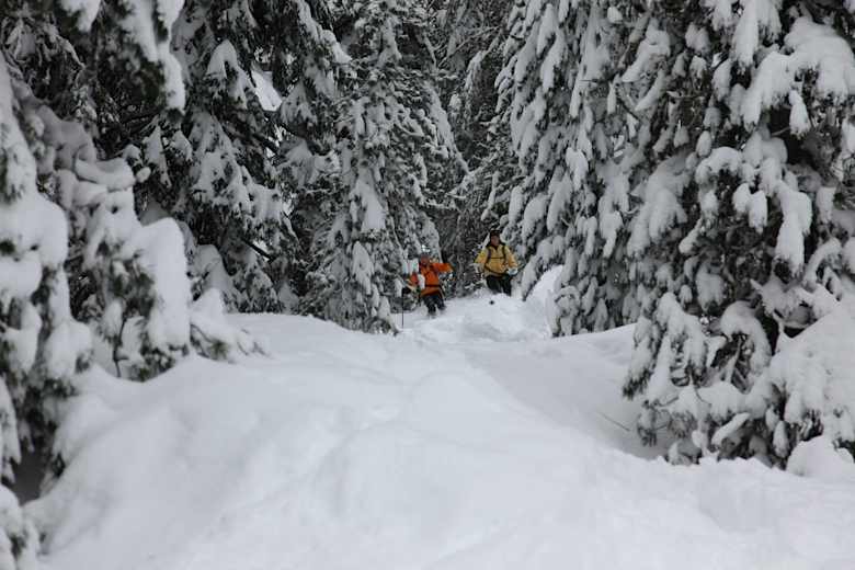 Bei der Abfahrt empfiehlt es sich mehr oder minder der Aufstiegsspur folgend ins Tal zu fahren.