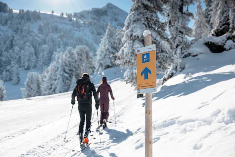 Wie für alle Pistentouren gilt auch hier, sich an die aktuellen Öffnungszeiten und Regelungen für Pistenskitourengeher der Bergbahnen Hochoetz zu halten.