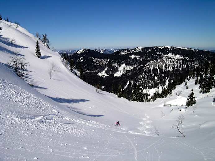Auf dieser tagesfüllenden Tour in den Mürzsteger Alpen reihen sich mehrere Gipfel aneinander, die zwar allesamt nicht allzu hoch sind, in der Summe aber jeden Tourengeher fordern.