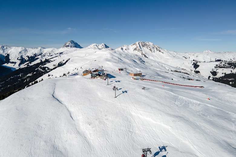 Mit dem Postbus 4010 oder dem Tiroler Skibus zur Haltestelle Pass Thurn Panoramabahn Mittelstation fahren.