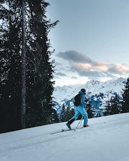 Auf der anfängerfreundlichen Skitour vom Pass Thurn zur Toni Alm (1.530 m) lässt sich die malerische Bergkulisse der Kitzbühler Alpen besonders gut genießen. Getopt wird das Erlebnis mit einem Kaiserschmarren auf der Hütte. Ein lohnenswertes Vergnügen im Salzburger Land für Jung und Alt.