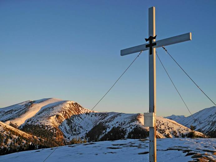 Über den ostseitigen Gipfelhang zur Lorettokapelle (1.817 m) und weiter auf einer Forststraße zur Aufstiegsroute am Sommertörl (1.644 m). Vorbei an der Sommerhütte (1.570 m), von dort über eine Forststraße (kurzer Gegenanstieg) zurück zur Straße und dieser folgend zurück zum Ausganspunkt Parkplatz Roßbach.