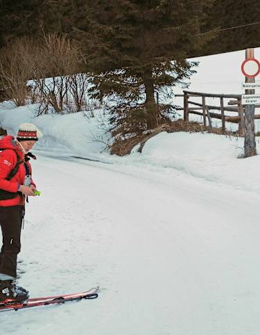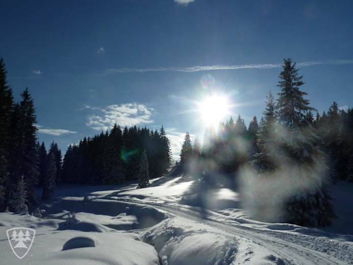 Von dort erfolgt die Abfahrt entlang der Aufstiegsspur bis zurück zum Parkplatz.