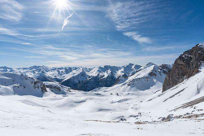 Am Colle del Sautron steht man auf der Grenze zu Frankreich und schaut hinüber ins Tal L'Ubayette Foto: Consorzio Turistico Valle Maira/Ph. Giacomo Meneghello