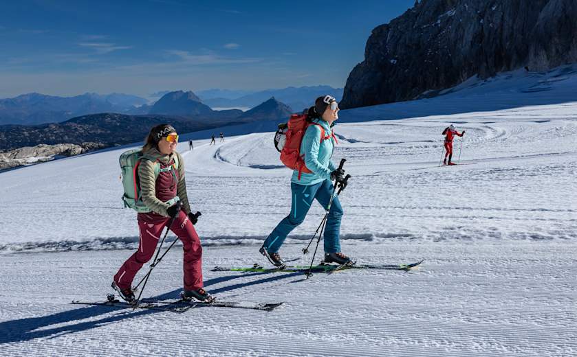 Die Kleine Mitterstein Tour verläuft auf markierten Abfahrts- und Aufstiegsspuren durch hochalpines Gelände und eignet sich gut für eine Einsteigertour. Ausgangspunkt ist die Bergstation Hunerkogel am Dachstein.