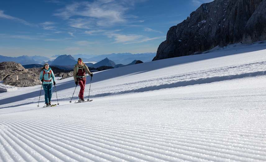 Die Große Mitterstein Tour führt auf präparierten Abfahrtspisten und Aufstiegsspuren über den gesamten Schladminger Gletscher. Die Weite des Dachsteinmassives und die hochalpine Landschaft sind dabei sehr beeindruckend. Ausgangspunkt ist die Bergstation der Dachstein-Seilbahn.