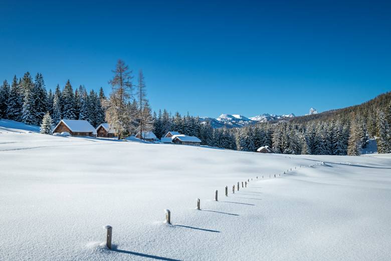 Die Hütten sind im Winter nicht bewirtschaftet, dennoch oder gerade deswegen ist die Viehbergalm ein einzigartiger Platz, um die Ruhe und Stille des Winters zu genießen.