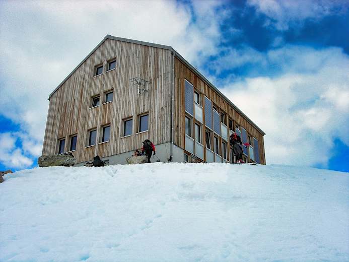 Die Grialetschhütte bietet von Februar bis April eine tolle Übernachtungsmöglichkeit für Skitourengeher und Schneeschuhwanderer.