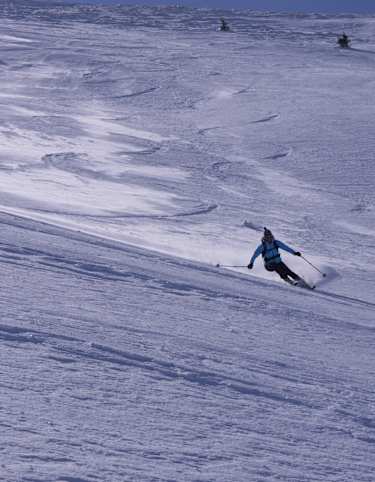 Die Abfahrt erfolgt wahlweise über die präparierte Piste oder bei geeigneten Verhältnissen im freien Gelände. Die vielen Abfahrtsoptionen im freien Gelände bieten bei guter Schneelage breite, offene Hänge mit vielen Linienmöglichkeiten und machen die Abfahrt zu einem echten Erlebnis. Im Skigebiet von Sportgastein stehen zudem drei offizielle Freeride-Routen zur Verfügung: Golden Powder, Golden Rush und Golden Ride.