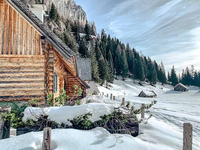 Von der Talstation der Wurzeralm Standseilbahn gehen Sie die eigens angelegte Tourengeherspur entlang der Standseilbahn hoch zur Wurzeralm. Alternativ können Sie natürlich auch mit der Standseilbahn fahren. (ca. 600 Höhenmeter weniger)