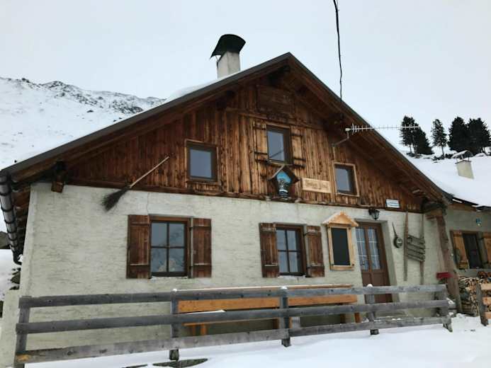 Zwei flache Kilometer sind es bis zum Alpengasthof Lüsens (1.636 m). Ob man hier auffellt, zu Fuß der Straße entlang geht, oder auf der Loipe taleinwärts skatet, bleibt jedem selbst überlassen. Im Fall der Loipe bitte unbedingt den Langläufer:innen Vorrang geben und behutsam mit der Loipe umgehen. Knapp östlich der Melach gelangt man in weiteren zwei Kilometern in den eindrucksvollen Talkessel unterhalb des hier alles dominierenden Lüsenser Fernerkogels – spätestens ab dem Alpengasthof mit Fellen. Im Talschluss, gleich nach der Talstation der Materialseilbahn über die Brücke, und nach rechts zu einer kleinen Hütte am Waldrand (Jugendheim). Im Wald (tw. steil) dem Sommerweg (Markierungen) folgend bis zur Längentalalm (1.988 m). Man bleibt stets links (südlich) des Längentaler Bachs. Ab der Alm im flachen Talboden weiter das Tal einwärts bis auf etwa 2.100 m Seehöhe. Rechts oberhalb sieht man (hoffentlich!) bereits das Westfahlenhaus. Um die steilsten Bereiche der alten Moräne unterhalb der Hütte zu meiden, holt man weit aus und gelangt in einem Rechtsbogen ansteigend zum Endpunkt der Etappe.