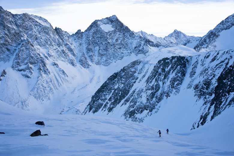 Ausrüstung: Herkömmliche Skitourenausrüstung, zusätzlich Ersatzkleidung und Essentials für Hütten.