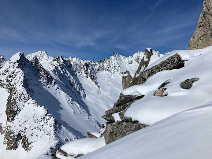 Der formschöne Skigipfel der Extraklasse bietet alles, was das Skitourenherz begehrt: Einen breiten und steilen Firnhang und eine atemberaubende Aussicht.