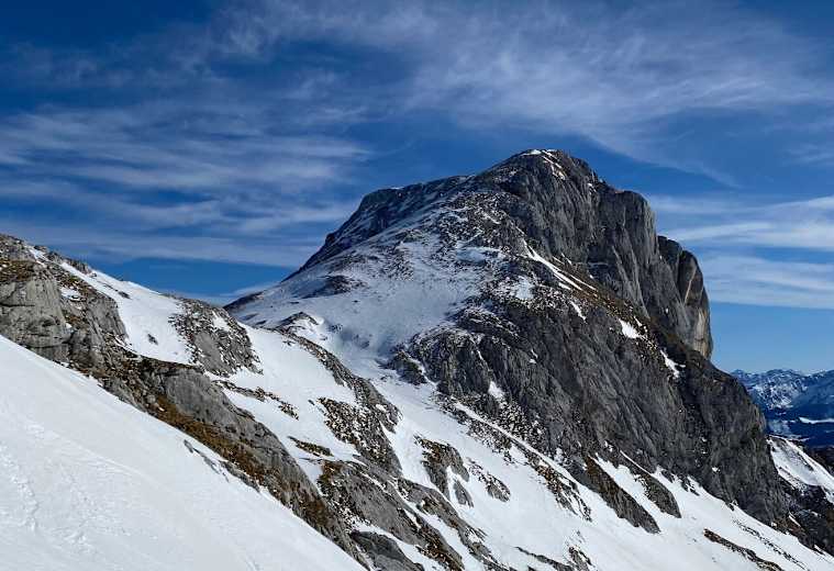 Klassische, südseitige Firntour auf einen herrlichen Aussichtsberg auf der Südseite des Dachsteingebirges mit zahlreichen Abfahrtsvarianten.