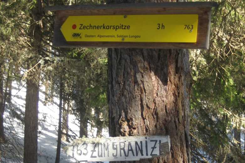 Eine Aufstiegsvariante führt vom Ausgangspunkt in Grabendorf über die Tscharra zur Granitzlhütte. Dann weiter wie beschrieben bis zum Gipfel.
