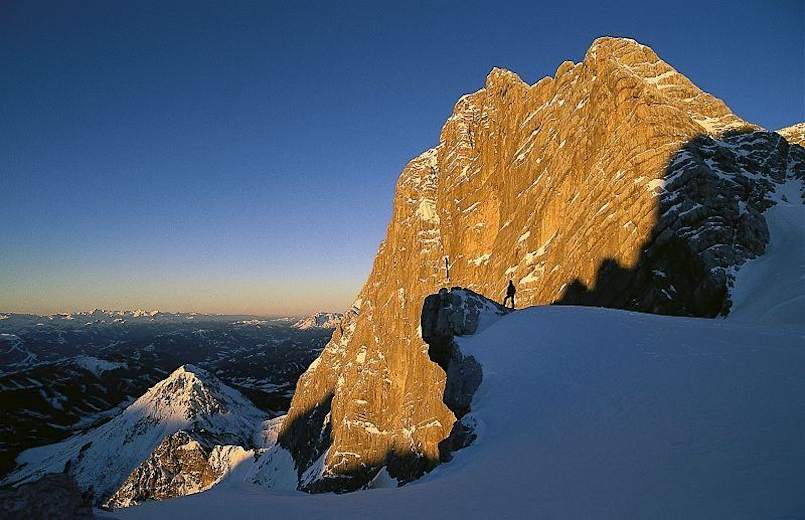 Die Österreichische National-Skitour führt von der Bergstation der Dachstein-Seilbahn am Hunerkogel (2.700 m) nach Obertraun. Diese landschaftlich imposante und durchaus anspruchsvolle Skitour zählt sicherlich zu den schönsten Touren im steirischen und oberösterreichischen Dachsteingebirge.