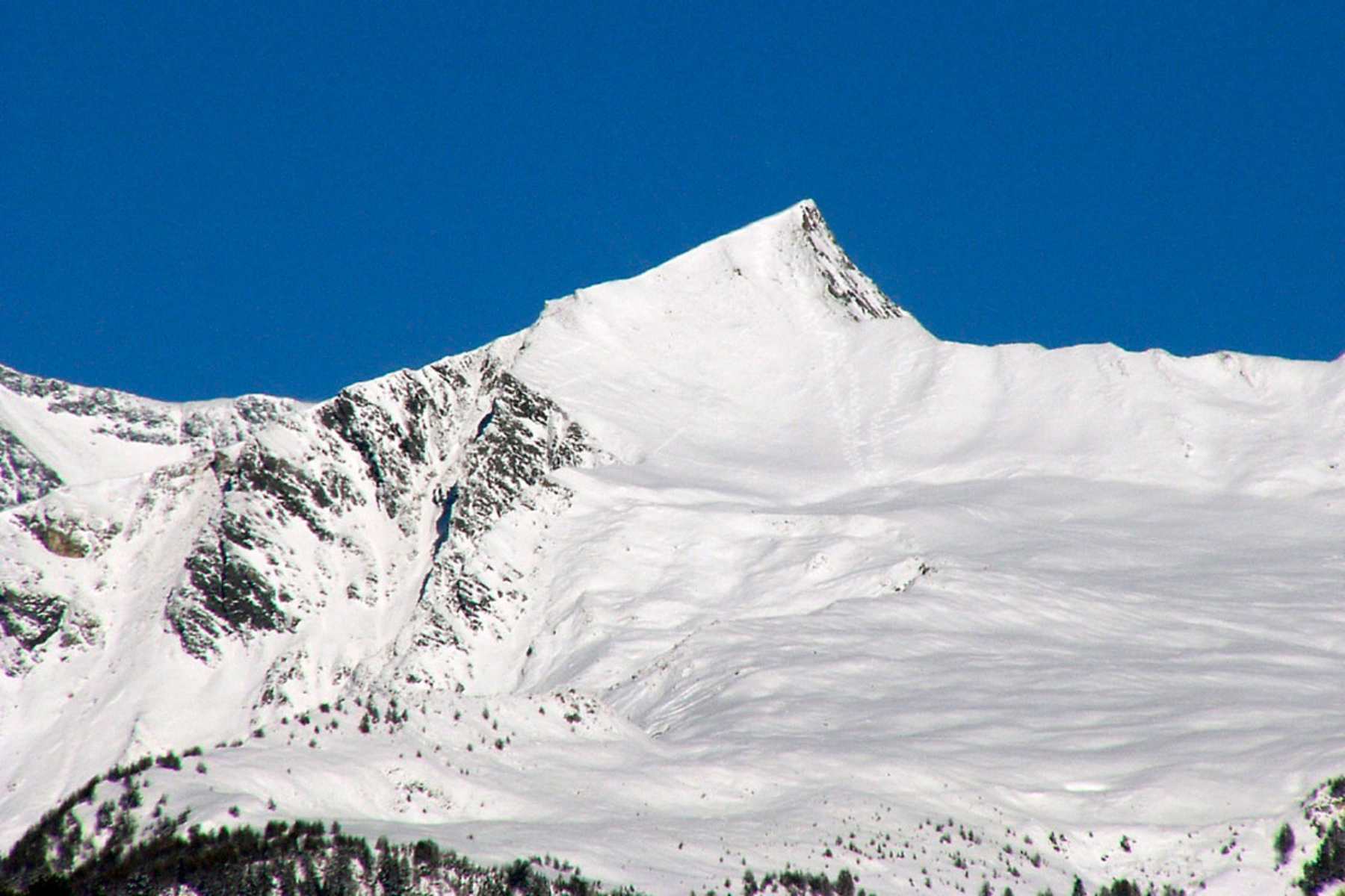 Die letzten Meter zum Gipfelkreuz sind dann wieder etwas lockerer und belohnen mit einem imposanten Ausblick auf den höchsten Berg Österreichs. Ein gutes Skidepot findet sich auch bei einer kleinen Heuschupfe am Beginn der Flanke. Von hier ist es möglich, speziell im Frühjahr, über den aperen Sommerweg den Gipfel zu erreichen.