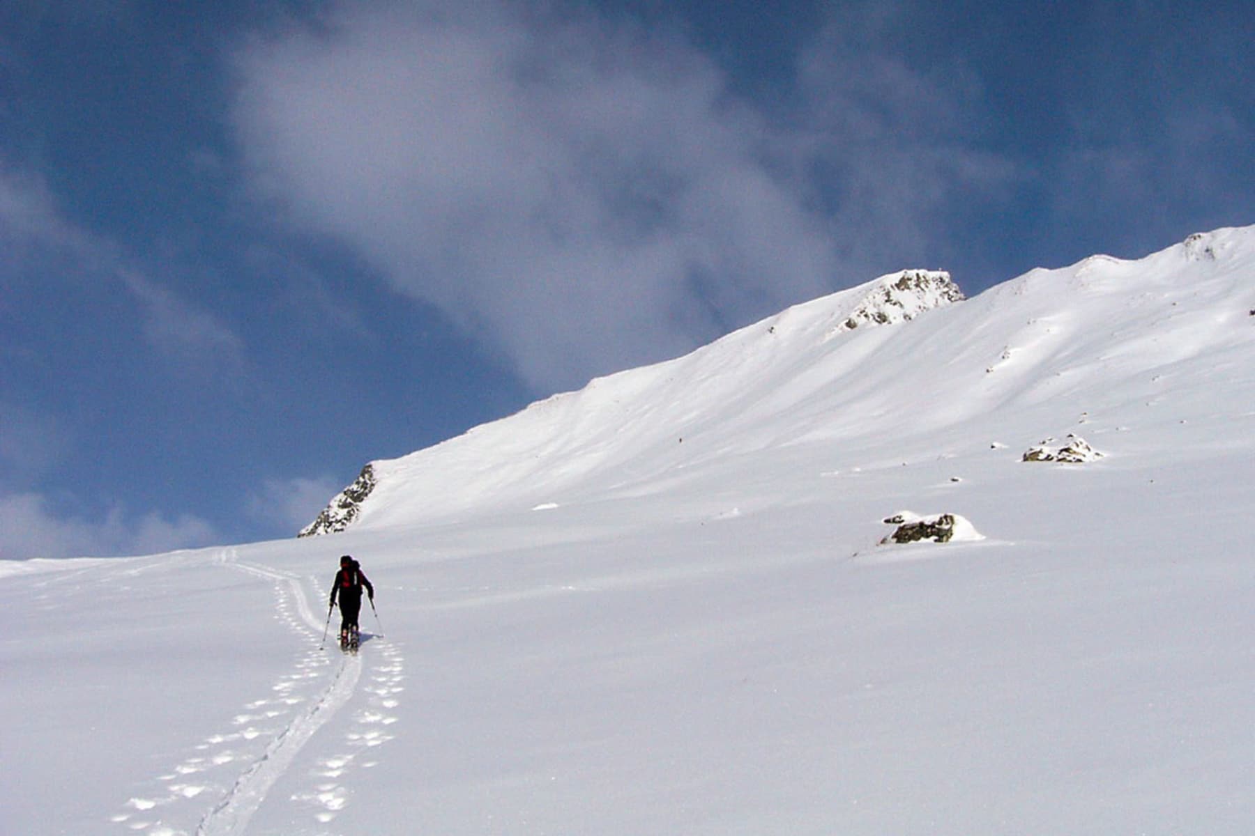 Dieser erfordert solide Spitzkehrentechnik und ein sicheres Beherrschen der Ski bei der Abfahrt. Ebenso ist dieser Steilhang, wie schon erwähnt, nur bei absolut sicheren Verhältnissen zu empfehlen.