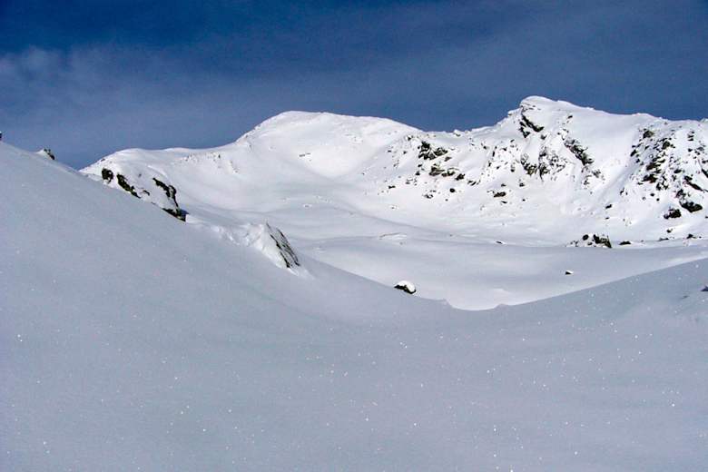 Bald ist freies Wiesengelände am Ende der Forststraße erreicht und die Spur hält sich nun an das östliche Ende der von weitem sichtbaren Lawinenverbauungen. Achtung: Nicht zur Seespitzhütte weitergehen! Nach einer guten Stunde erblickt man die Hütten der Reggn Alm, die man etwas oberhalb auf einem Rücken passiert. Über kupiertes Gelände geht man nun auf eine markante Erhebung zu, die in der Karte den Namen „Schober“ trägt und östlich umgangen wird. Man durchschreitet nun ein herrliches Hochkar unterhalb des Tourenziels. Über den abschließenden, etwas steileren Südrücken gelangt man schließlich zum höchsten Punkt (3 ½ h vom Auto).