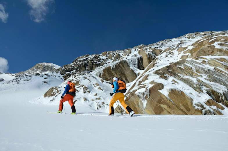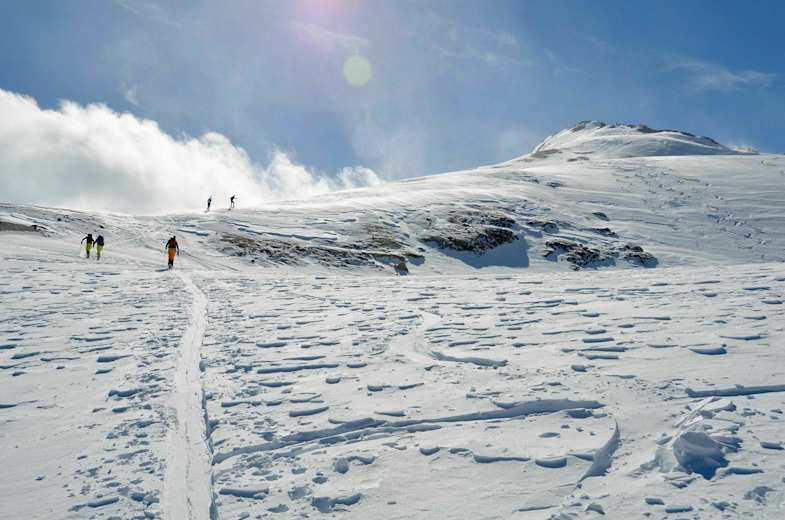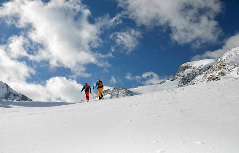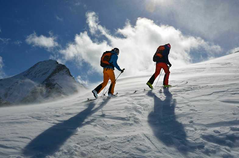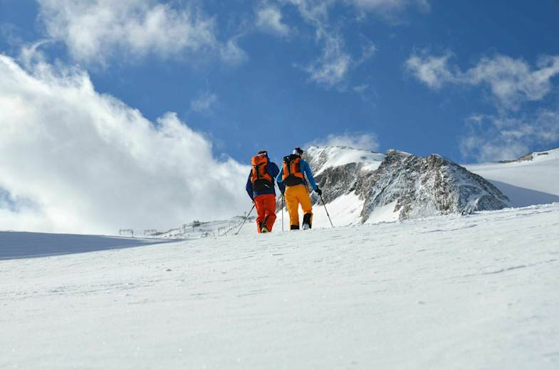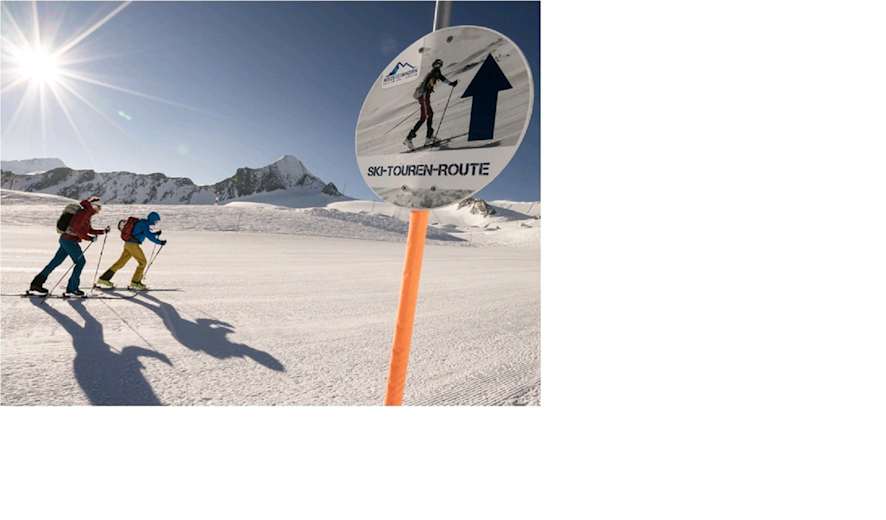 Am Parkplatz der Gletscherbahnen in Kaprun zieht man die Felle auf und schon geht's los. Rein in die Bergbahn, auf halber Strecke zur Bergstation am Langwiedboden taucht das unglaubliche Panorama aus den letzten Nebelfetzen auf. Ausgangspunkt dieser Pistenskitour ist beim Info-Point am Langwiedboden auf 1.976 m. Entlang des Pistenrandes geht man in sicherer Distanz zu den Skifahrern und Boardern über 899 Hm hinauf bis zum Alpincenter (2.450 m). Von dort auf der Piste weiter zur Bergstation des Maurerliftes (2.875 m).
