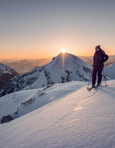 Mittelschwere und überaus lohnende Skitour auf den schönen Saalkogel in den Tiroler Kitzbüheler Alpen. Auf dieser sehr aussichtsreichen Tour passiert man die Gipfel des Hahnenkampels (1.812 m) und des Rauber (1.972 m) bevor man schließlich das eigentliche Ziel, den Gipfel des Saalkogel (2.006 m) erreicht.