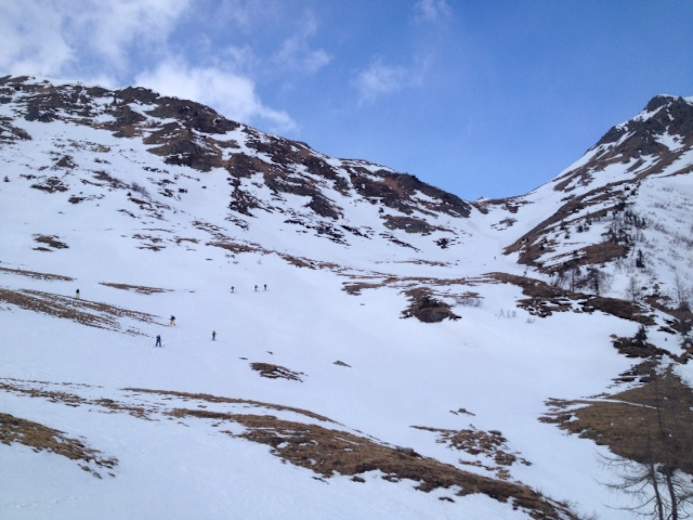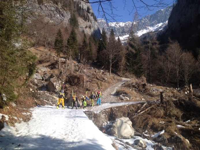 Der erste Tag, die erste Etappe. Vom Italienischen Sappada geht es über die Hochalpe nach St. Lorenzen. Nach 30 Minuten Fußmarsch und der Skiausrüstung am Rücken geht es endlich „richtig" los: der Aufstieg auf die Hochalpe. Bei schweren und oftmals harten Schneebedingungen beim Aufstieg ist eine gute Tourenausrüstung samt Aufstiegshilfe gefragt.