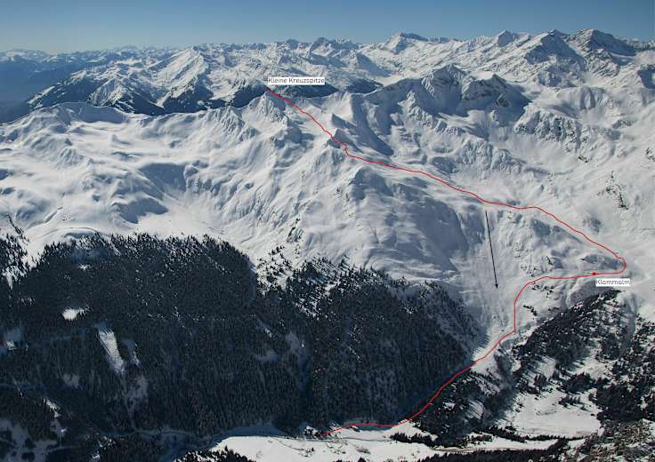 Mittelschwere Skitour vom Weiler Flading über die Klammalm auf die Kleine Kreuzspitze (2.518 m). Der Gipfel ist ein vielbesuchter Skitourenberg mit großartigen Skihängen.