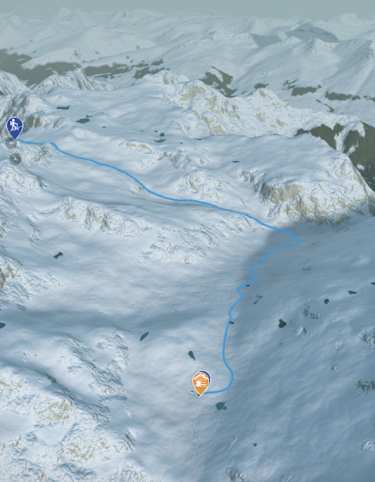 Aufstieg zum Cime dei Forni (3.243 m). Über weite Hänge führt die Abfahrt zur Pizzini Hütte zurück. Aufstieg 500 Hm, 2:30 h.