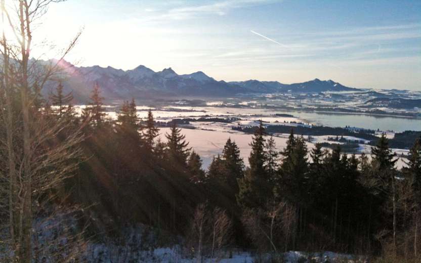 Ideale Anfänger-Skitour oder Feierabendrunde in den Ammergauer Alpen in Bayern. Die Skitour auf den Buchenberg verwöhnt die Skitourengeher mit herrlichen Landschaftseindrücken und einer Traumaussicht auf das das verschneite Allgäuer Voralpenland. Auf dem Gipfel befindet sich mit der Buchenberg-Alm ein gemütliches Einkehrziel.