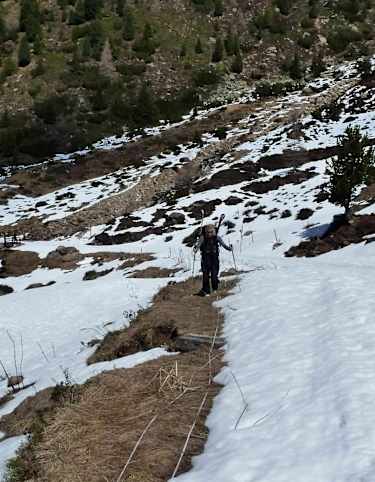 Vom Parkplatz in Gries aus führt der Weg immer in das Tal hinein. Anfangs kann man über die verschneiten Felder gehen. Dort war der Steig nur Winnebachseehütte abzweigt, muss man sich dann aber auf der Forststraße einreihen. Die Kehren kann man aber immer wieder ganz gut abschneiden, weil die Waldschneisen breit genug sind.