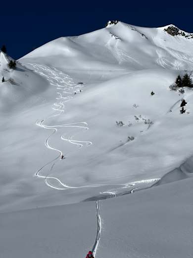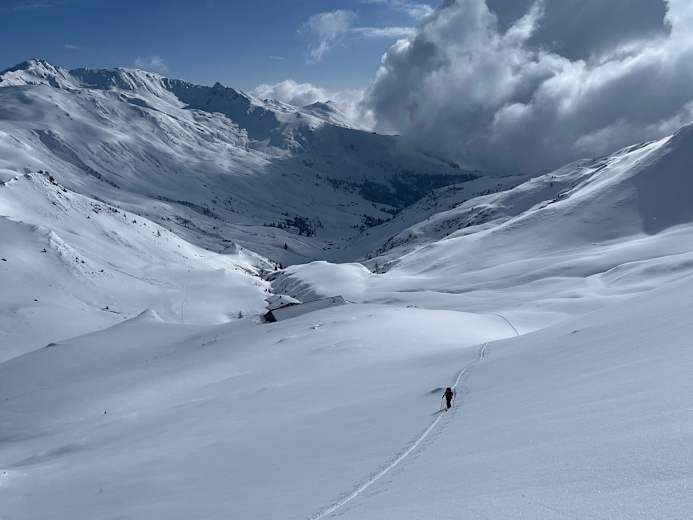 Diese Tour bietet aufgrund der nordseitigen Expostion lange gute Schneequalität.