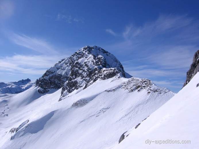 Einfache Skitour auf die Juppenspitze (2.412 m): Ein erster Test für die junge Skitourensaison: Die Juppenspitze im Bregenzerwald ist die kleine Schwester der Mohnenfluh und für den gewöhnlichen Skifahrer daher uninteressant. Umso schöner ist sie für den Skitourengeher, der früh im Jahr auch ohne Lift-Unterstützung von Warth oder von Oberlech (kurze Variante) auf den ersten Skiausflug gehen kann. Lohnende Skitour im Lechquellengebirge in Vorarlberg.