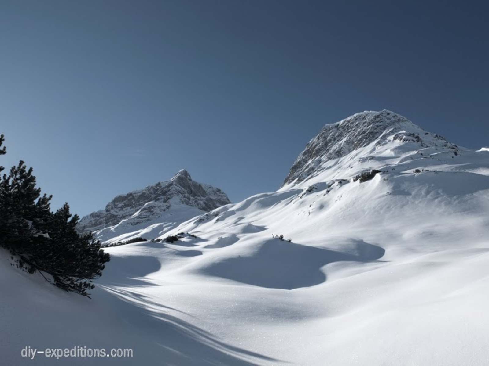 Mittelschwere Skitour auf den Pöngertlekopf (2.539 m) in der Alpenregion Bludenz: Einsamkeit garantiert am Pöngertlekopf. Unverspurte Hänge in der Umgebung von Lech? Ja, das gibt es. Aber nicht umsonst. Spurarbeit ist gefragt, wenn man auf den Pöngertlekopf möchte. Lohnende Skitour im Lechquellengebirge in Vorarlberg.