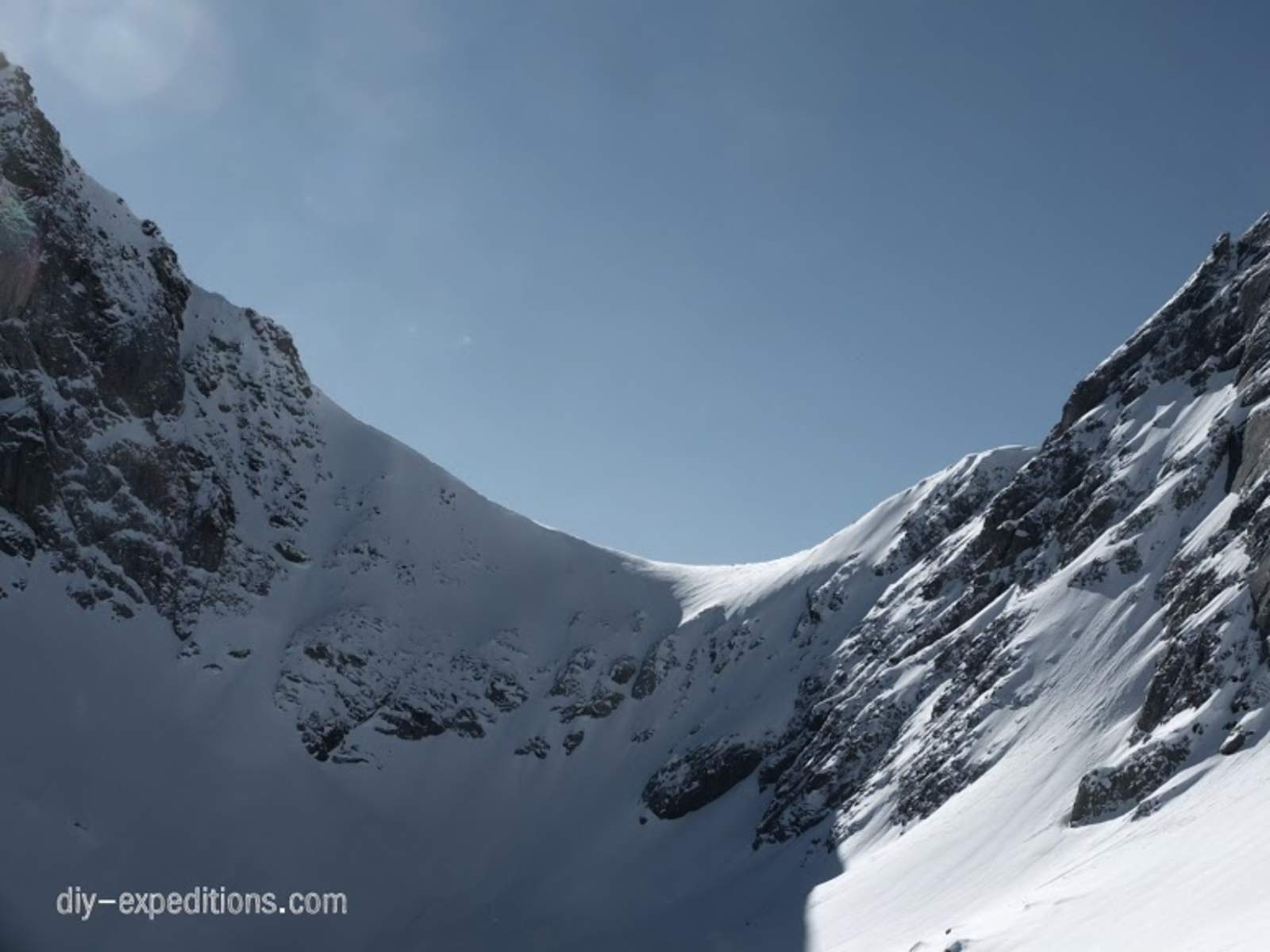 Ist der Schnee sehr hart oder gar vereist, sind Steigeisen und ein kleiner Pickel in der Crux zum Joch nützlich.