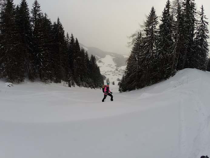 Die Skitour auf die Bischlinghöhe startet am Parkplatz der Talstation in der Zaglau. Zunächst mäßig steil entlang der Piste des kleinen Schlepplifts hinauf, in Richtung der Waldschneise „Leiwarinne“, wie die Einheimischen sie nennen. Den Schlepplift lässt man hinter sich und dann geht es ins Gelände. Über einige Spitzkehren gelangt man an das obere Ende der Waldschneise und erreicht den Ziehweg. Über diesen geht es flach ein Stück entlang, bevor eine Abkürzung durch einen Holzschlag in einigen steilen Spitzkehren weiter hinauf geht.