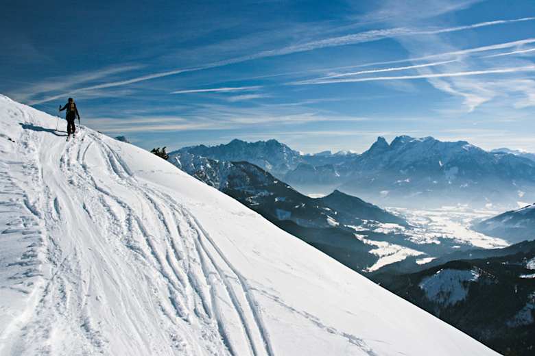 Über die Lange Gasse erreicht man den Gipfel jedoch in wesentlich sanfterem Gelände. Diese landschaftlich besonders reizvolle Skitour lockt obendrein mit einer herrlichen Abfahrt und ist wohl eine der beliebtesten und auch schönsten Touren in den Haller Mauern in der Steiermark.